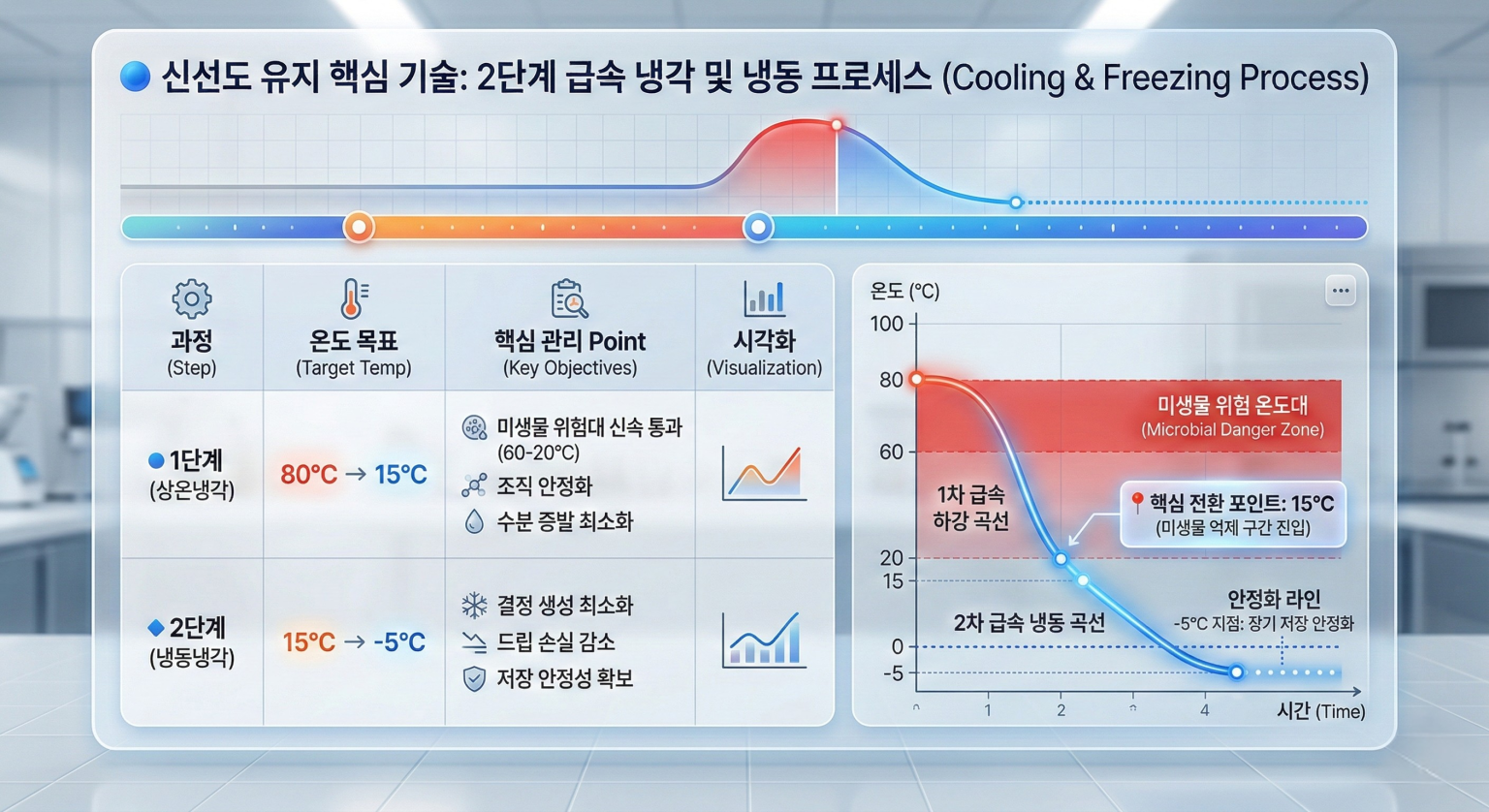 핵심 기술력: 2단계 급속 냉각 및 냉동 프로세스