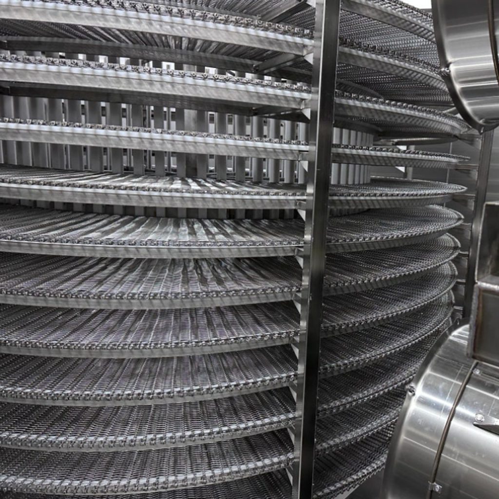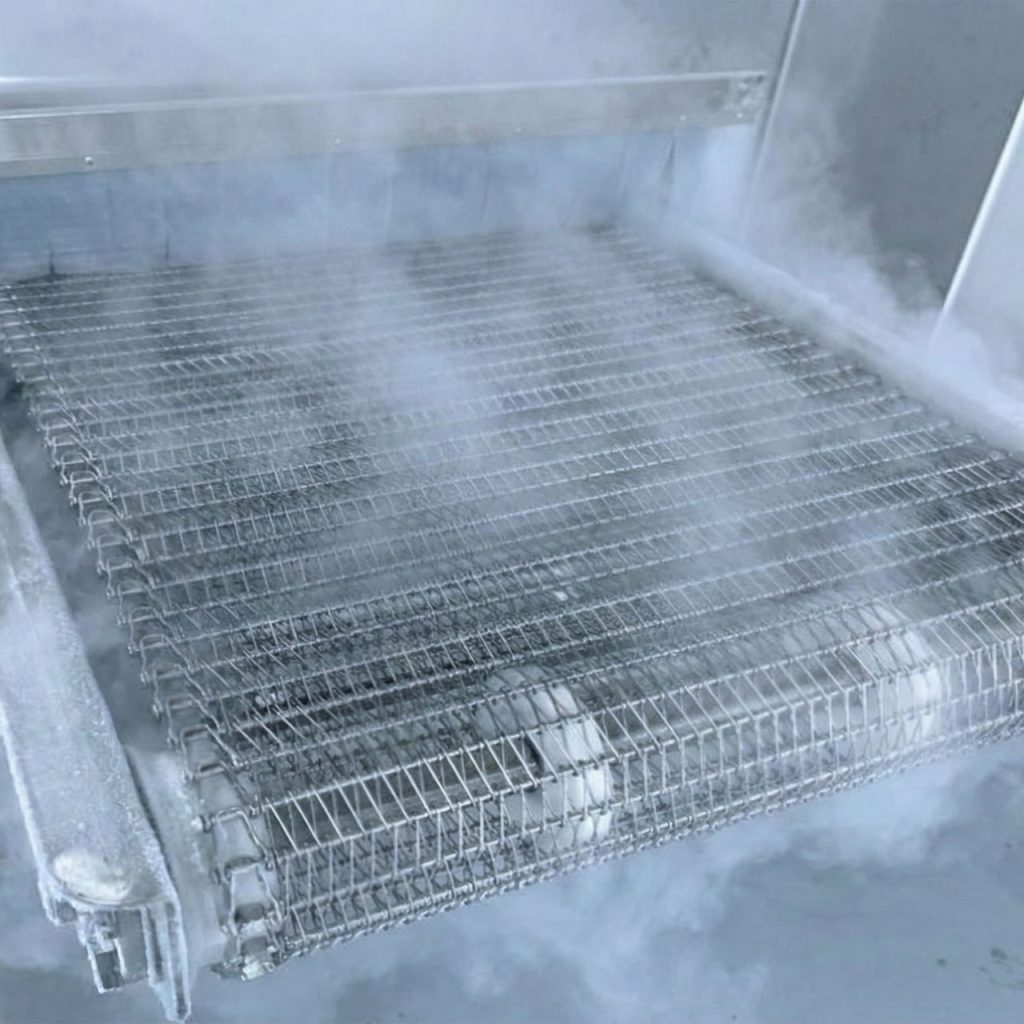 식품의 맛과 식감을 결정짓는 드립(Drip) 현상을 방지하기 위해서는 ‘동결 전 구간’을 얼마나 빠르게 통과하느냐가 관건입니다. (주)코리아프리저의 메쉬벨트는 공기 역학적으로 설계된 정밀한 메쉬 구조를 통해 초저온 냉풍이 제품의 상하좌우 모든 면에 즉각적으로 닿을 수 있게 합니다. 이러한 360도 전방위 냉각은 미세 얼음 결정을 형성하여 세포벽 파괴를 최소화하며, 해동 후에도 갓 수확한 듯한 신선함과 탄력을 그대로 유지하는 마법 같은 품질 차이를 만들어냅니다.